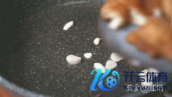 5. 锅中留极少油,开中火,爆香蒜片,加入素排骨翻炒少顷。