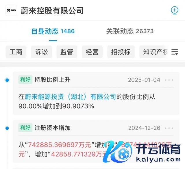 近日,蔚来控股有限公司还发生了工商变更,注册成本由约 74.29 亿元东谈主民币增至约 78.57 亿元东谈主民币。
